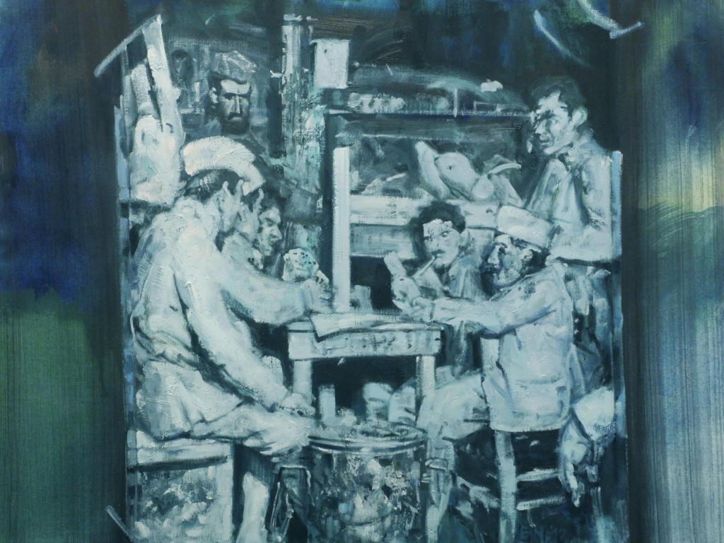 De spanning tussen gruwel en weemoed, die me overviel bij het steeds meer weer oprakelen van die beelden sloot aan bij het diepere thema van heel mijn oeuvre. Ik probeer door de onderwerpkeuze en de patina van het schilderij de patina van het leven te vatten. De littekens en kwetsuren van het bestaan en de oneindige kracht van de mens om te incasseren.